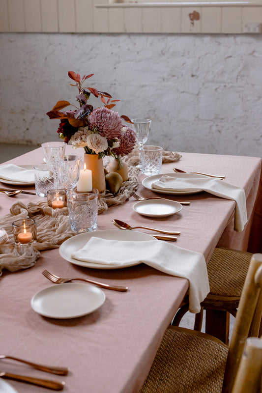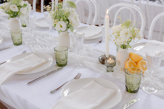 We also offer a wide range of products including candles, table runners, reversible candle holders, napkins, and glass vases to complete your event styling needs.