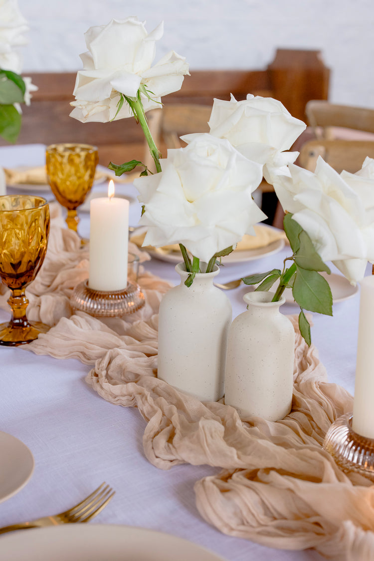 Our ceramic vases bring a natural and textured touch to any wedding or event tablescape. These versatile vases are perfect for event planners, stylists, venues, and DIY brides across Australia. Pair them perfectly or group with other ceramics to create a stunning floral display. The soft and earthy aesthetic of our Ceramic Bud Vases adds elegance and charm to your décor, making them an ideal choice for any event.