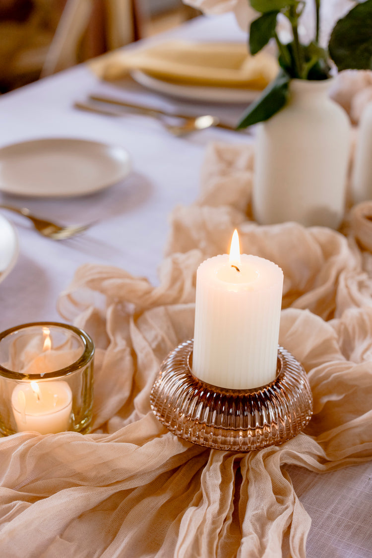 Illuminate your events with our elegant pillar candles at Event Curate. Perfect for décor & styling and table styling decor, these candles combine modern design with timeless elegance. Available in three sizes, our ribbed pillar candles can be used individually or grouped together for a stunning effect. Ideal for event florists, planners, venues, and DIY brides across Australia, they fit perfectly within our Reversible Sienna Candle Holder collection. Enhance your styling wedding décor with these versatile and sophisticated candles.