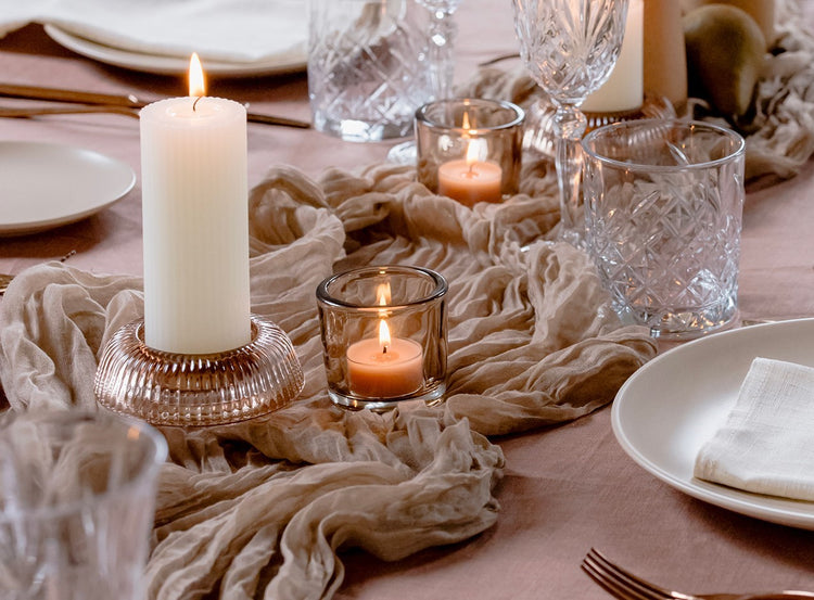 Alongside our main products, we offer dinner candles, table runners, reversible candle holders, napkins, and glass vases for a comprehensive event decor solution.